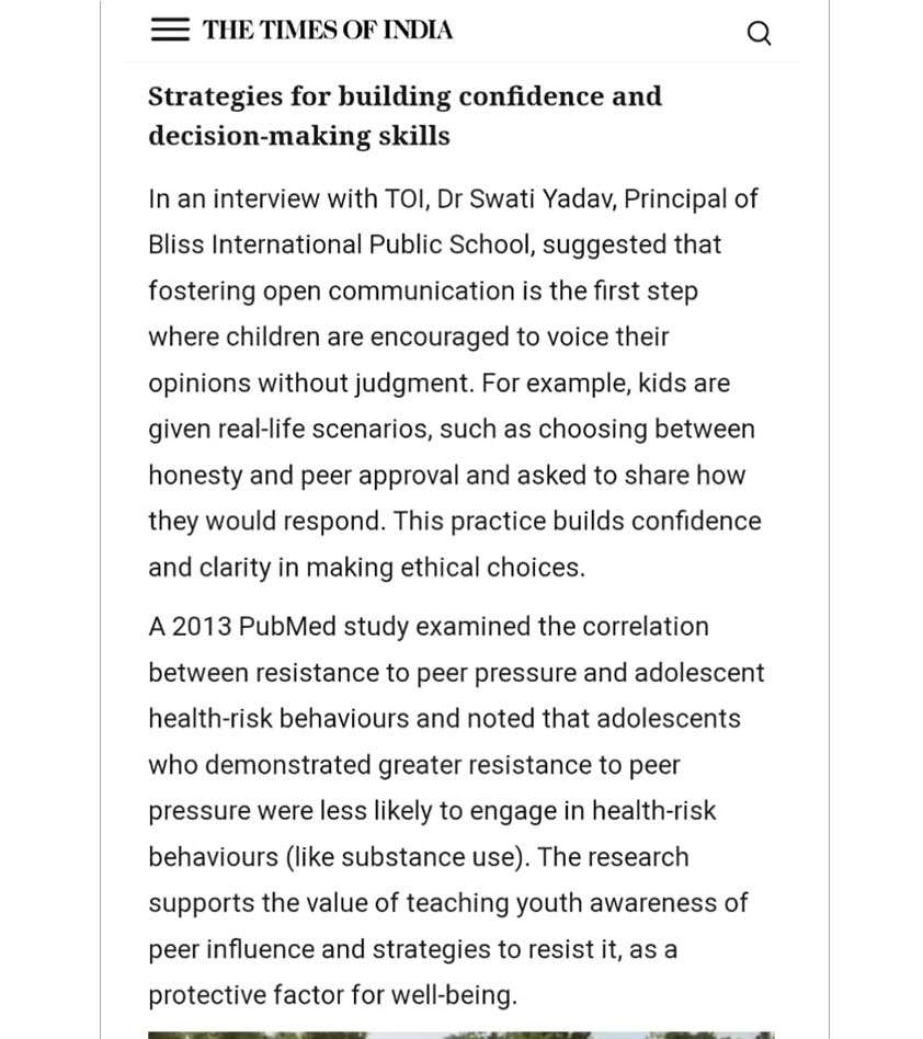 To ensure that the activities at our school reach you on a routine basis, we stay in touch with media. Bliss has found space in the esteemed newspapers like The Times of India, Dainik Jagran, Hindustan, Amar Ujala, Janwani and iNext. The news items not only encourage the students to do better, but also keep us connected!