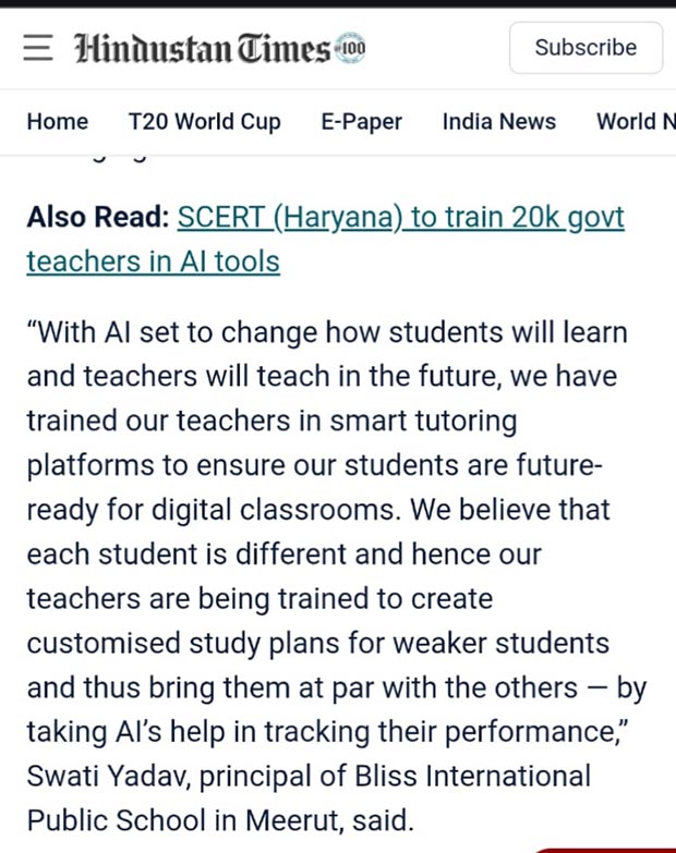 To ensure that the activities at our school reach you on a routine basis, we stay in touch with media. Bliss has found space in the esteemed newspapers like The Times of India, Dainik Jagran, Hindustan, Amar Ujala, Janwani and iNext. The news items not only encourage the students to do better, but also keep us connected!